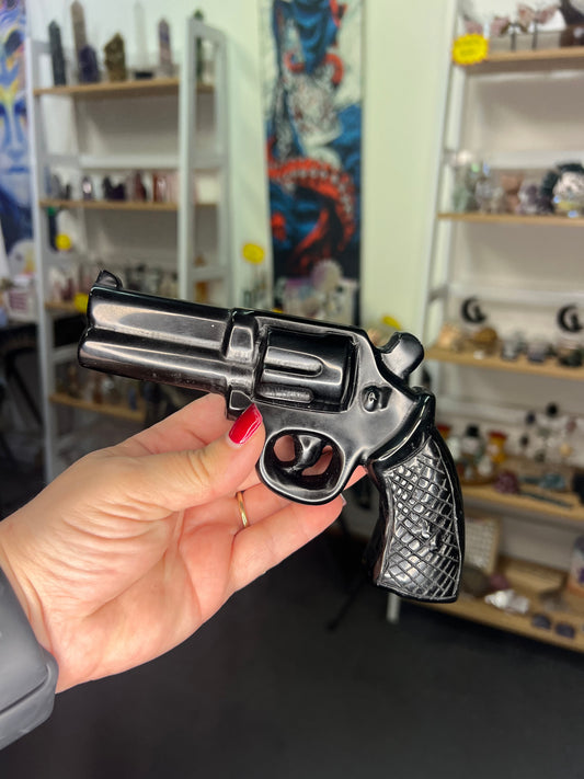 Sold outBlack Obsidian Gun Carving