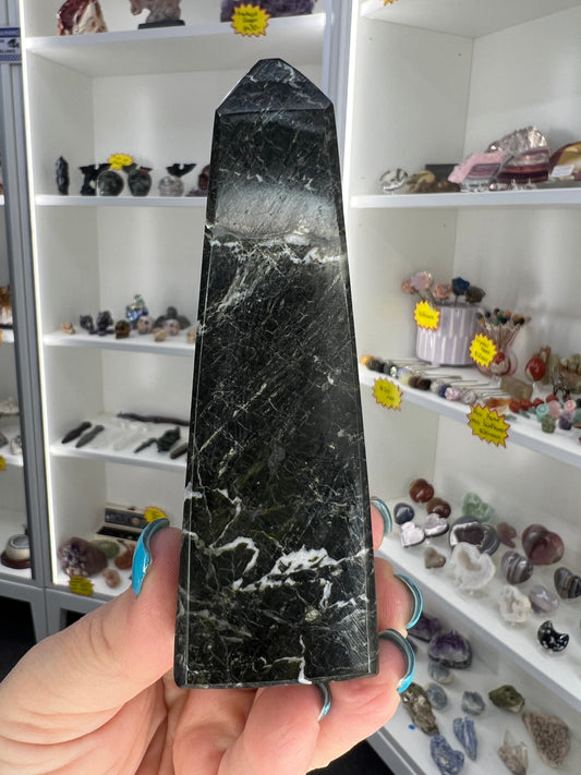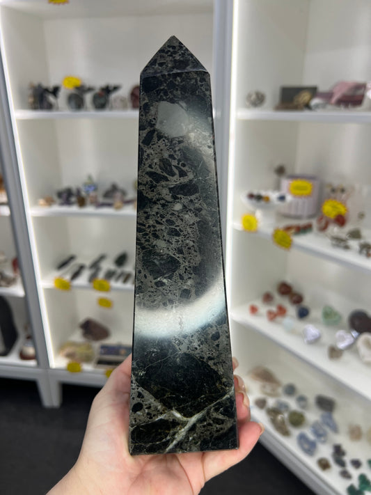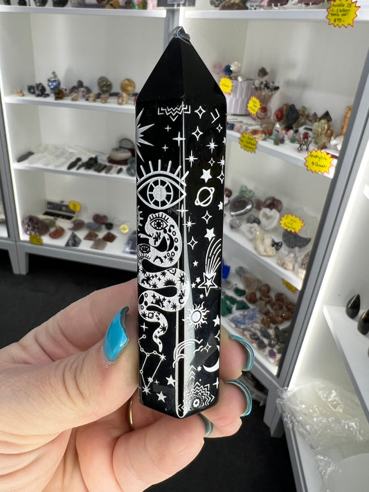Black Obsidian with Silver Pattern Tower
