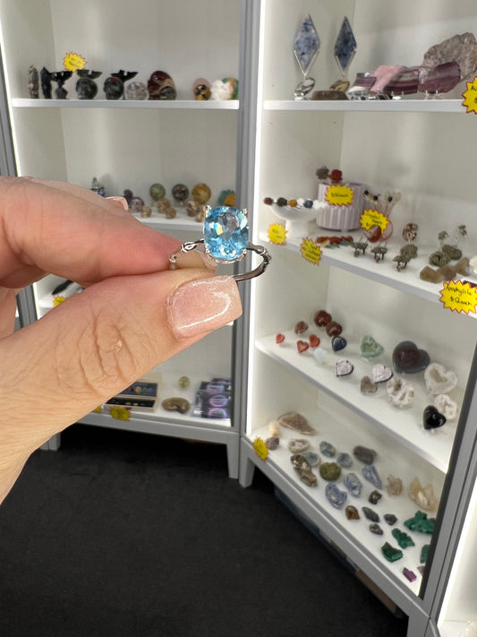 Blue Topaz Sterling Silver Ring (Size Adjustable)