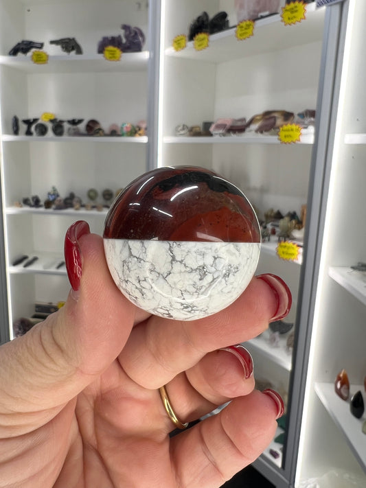 Red Jasper x Howlite Pokeball