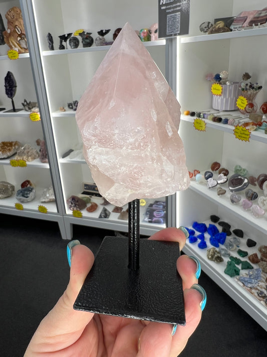 Rose Quartz Point on Stand