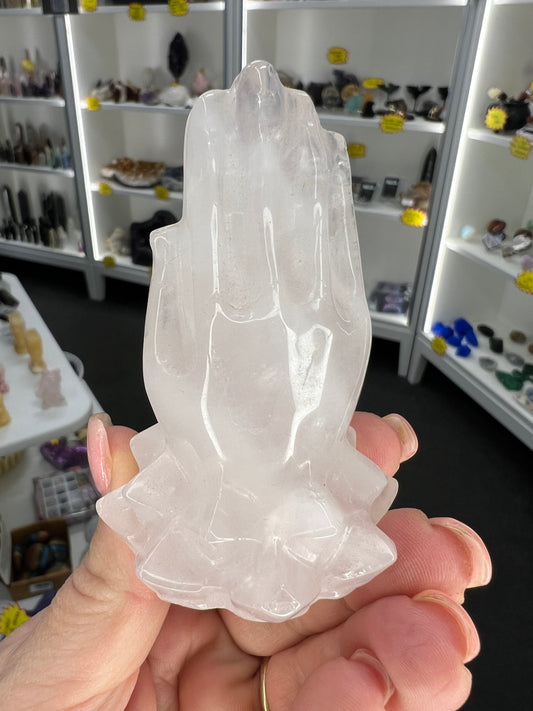 Sold outRose Quartz Praying Hands on Lotus
