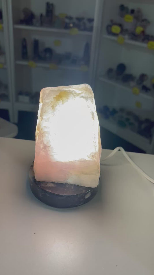 Rose Quartz Lamp on Fossil Orthoceras Base