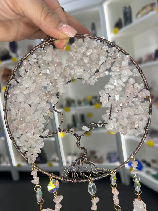 Rose Quartz Tree of Life Suncatcher