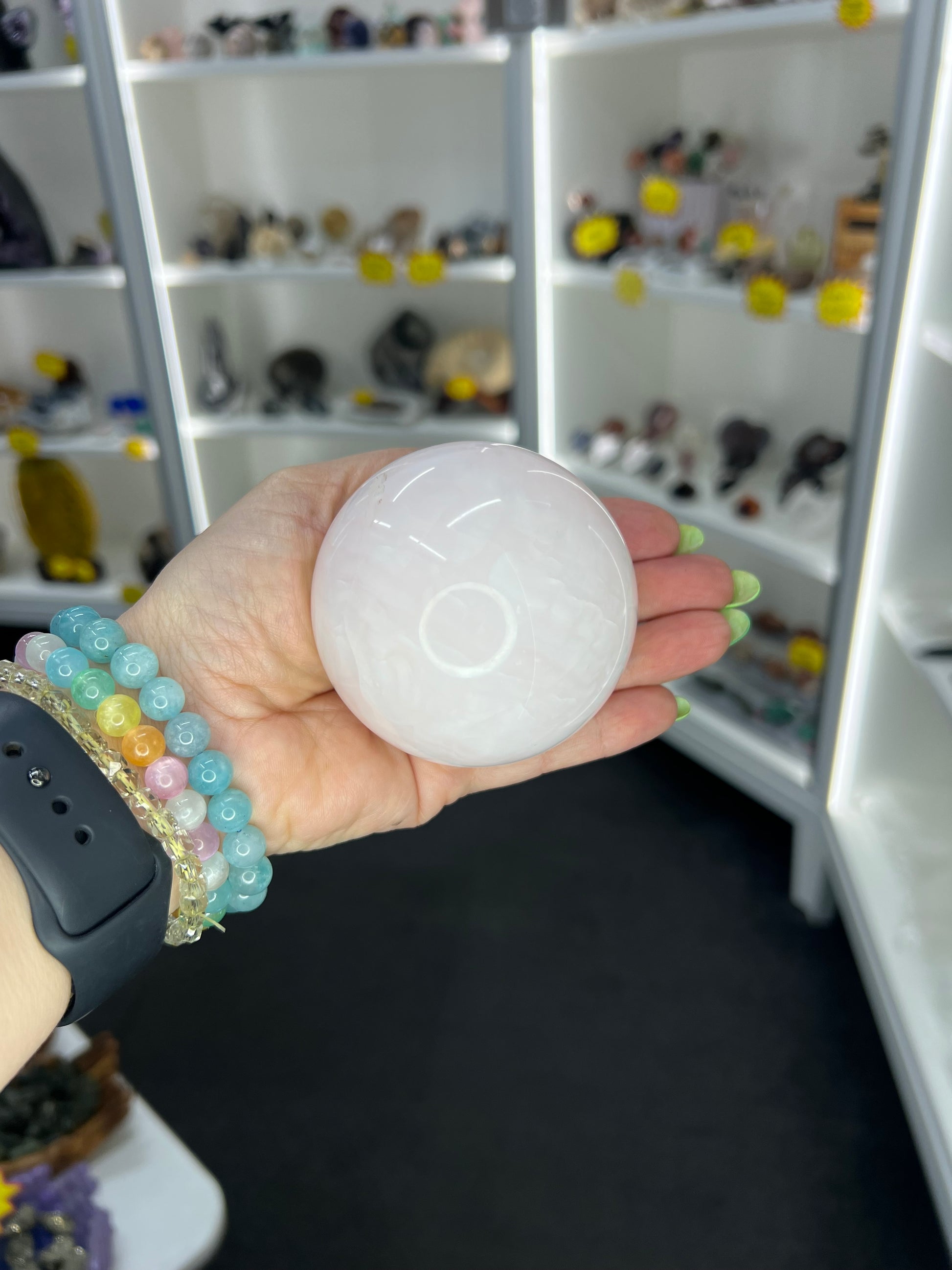 Pink Calcite Sphere on Stand