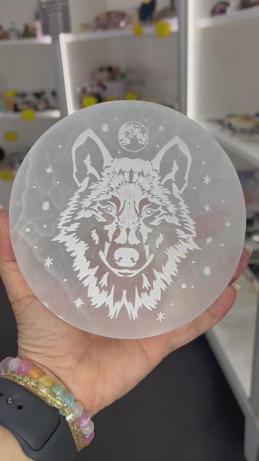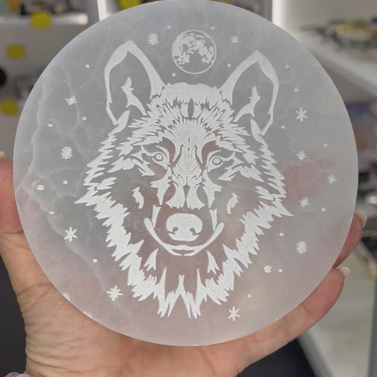 Selenite Wolf Charging Plate